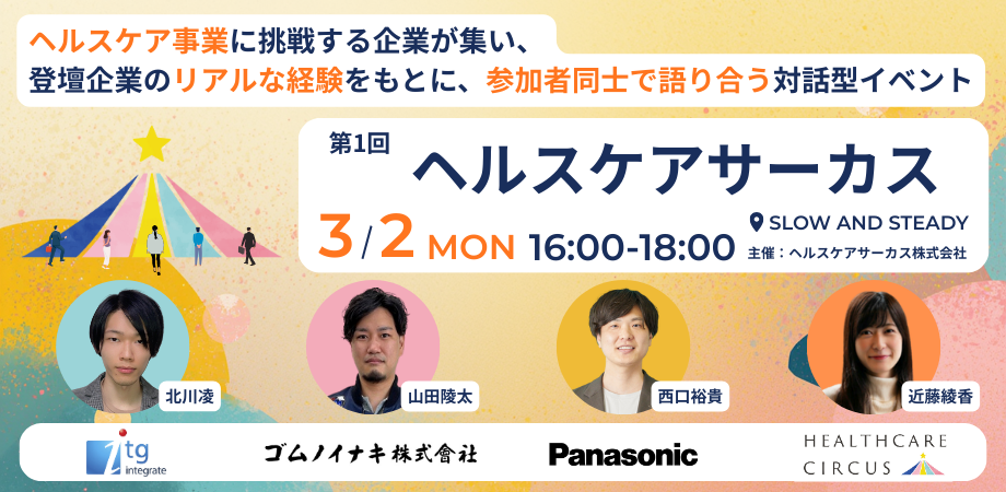 ヘルスケア事業に挑戦する企業が出会い、次の一歩を見つける。その積み重ねが、新たなヘルスケア事業を生み、やがて人々がより健康に生きられる未来へとつながっていく。『ヘルスケアサーカス』は、そんな未来へのきっかけとなる場でありたいと考えています。